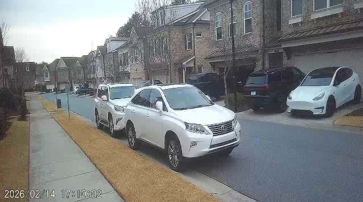 Two white Lexus SUVs illegally parked in front of 2023 Towneship Trail adjacent to an open garage door at 2021 Towneship Trail. Just a typical Saturday at Roswell Towneship. Who cares about safety of people or pets? Who cares that open garage doors and street‑parking are expressly prohibited? Who cares that open garage doors give burglars all the privacy they need to break into homes?